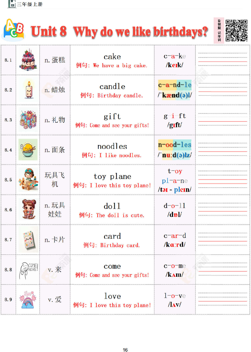 三上单词Unit8