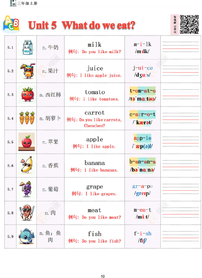 三上单词Unit5
