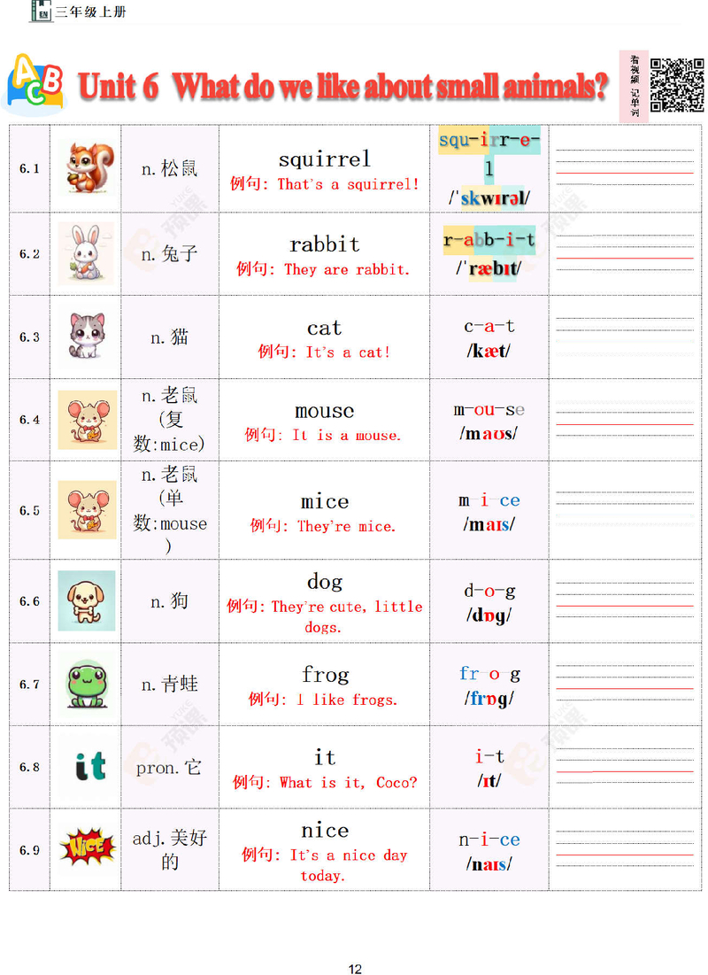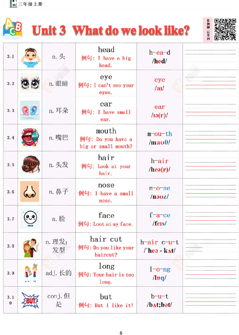三上单词Unit6