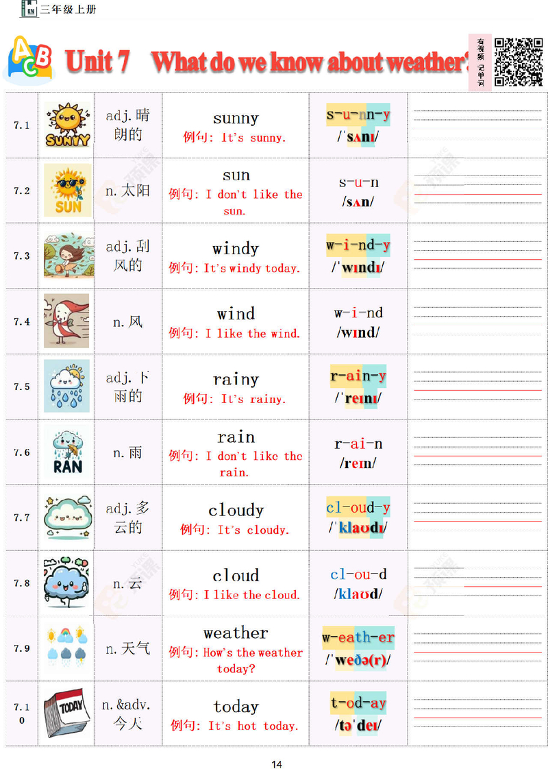 三上单词Unit7