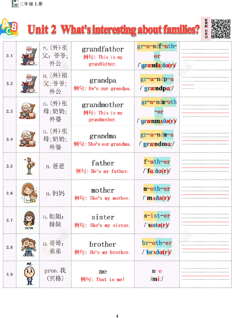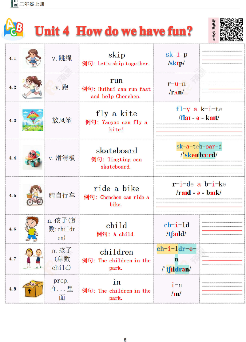 三上单词Unit4