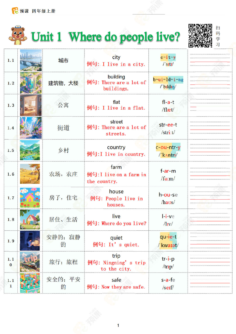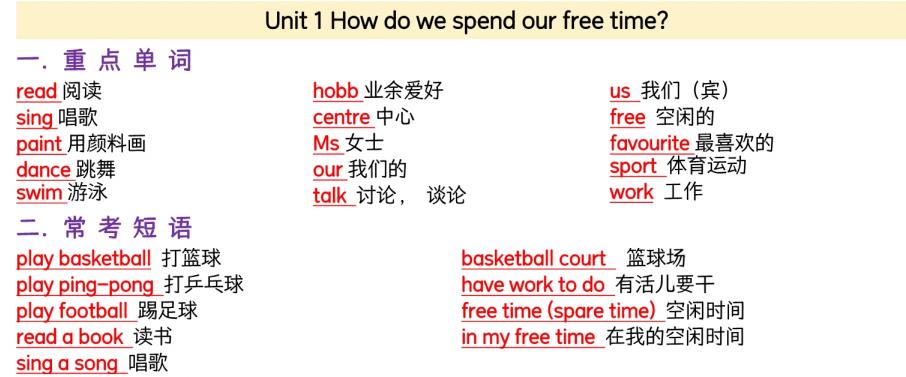 米荔四年级上册单词