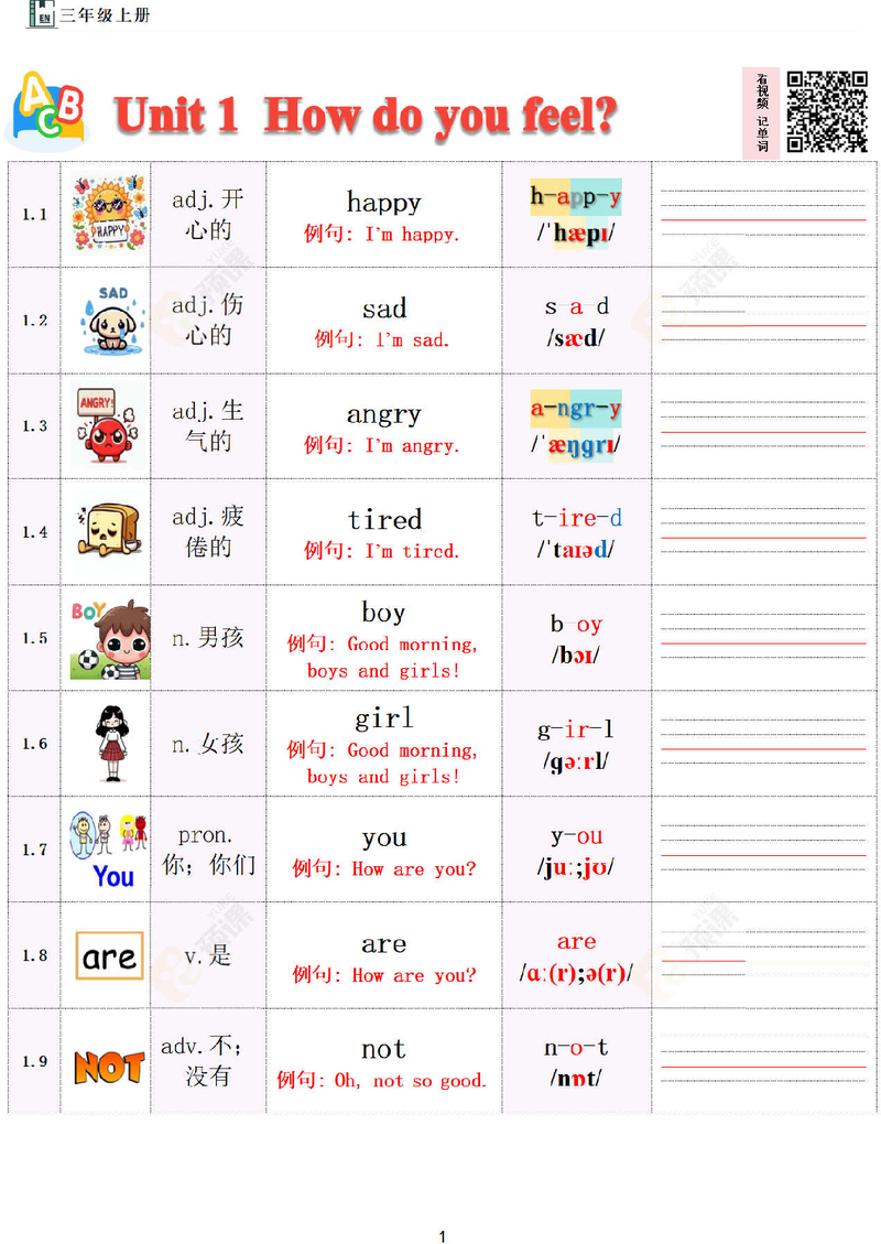 米荔三年级上册单词
