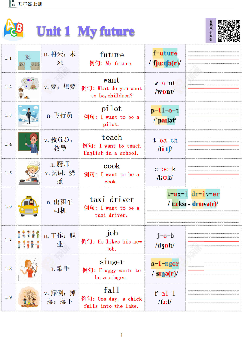 米荔五年级上册单词