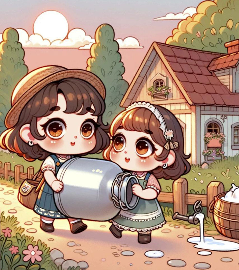 女孩和牛奶罐