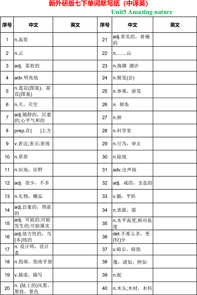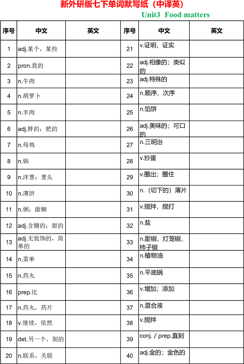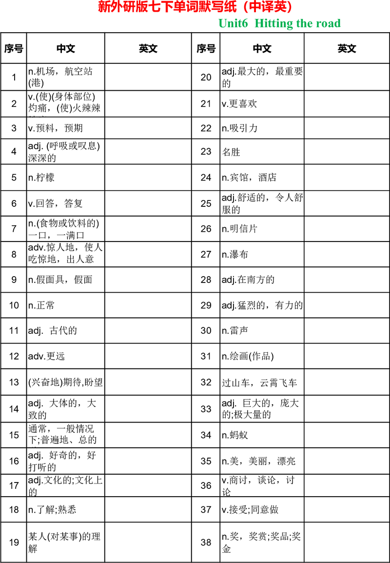新版外研八上unit6单词