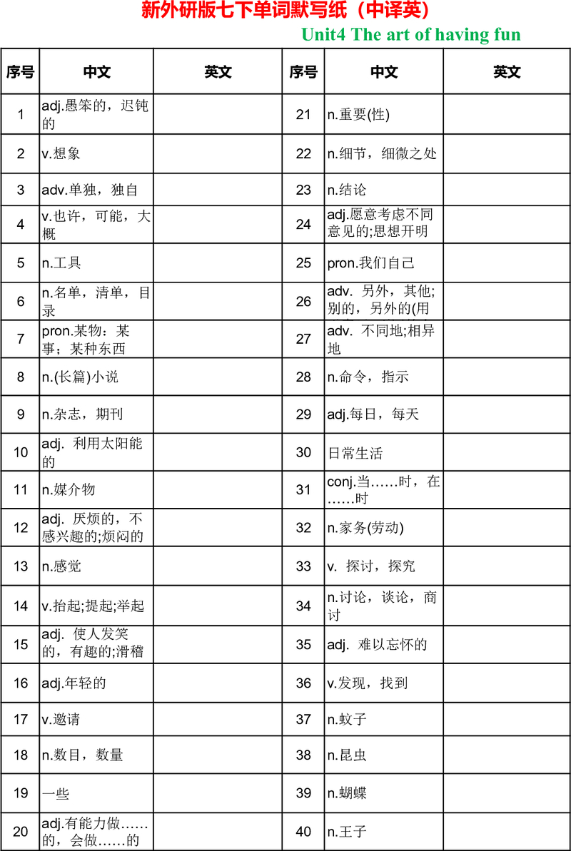 新版外研八上unit4单词