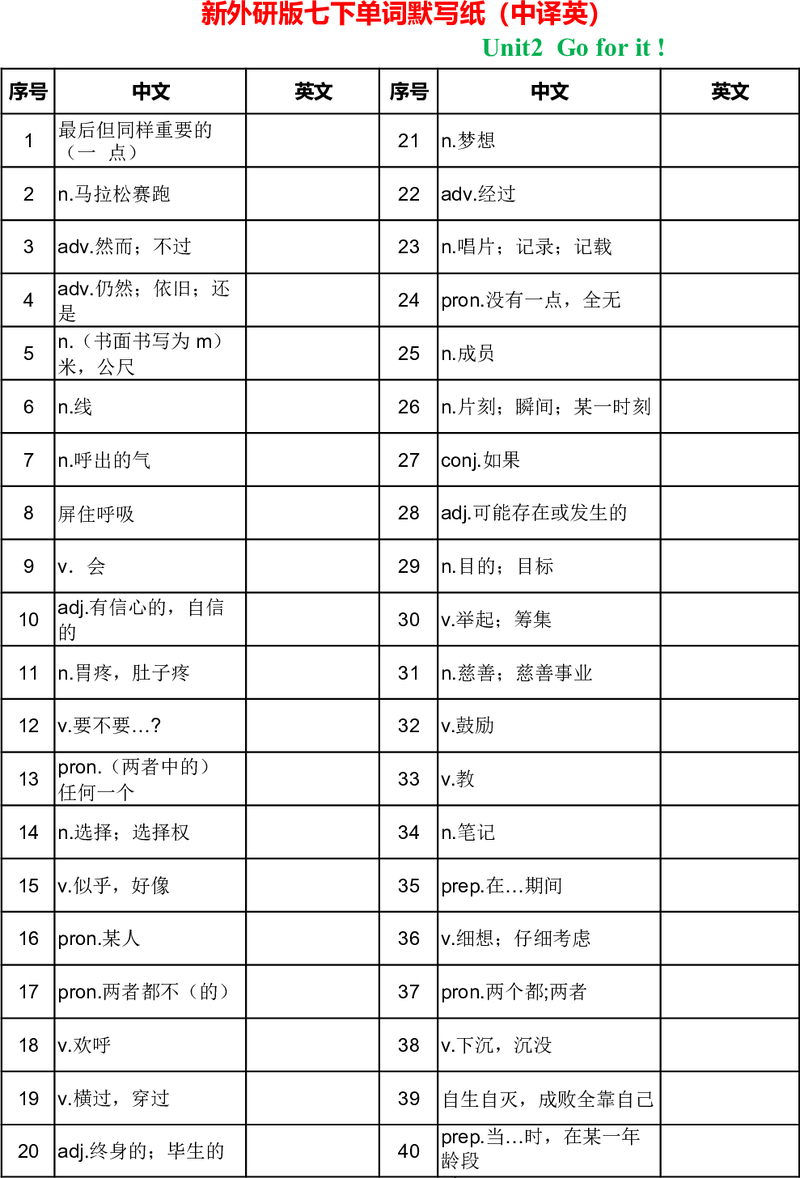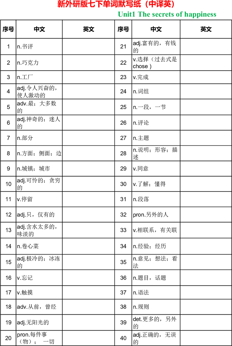 新版外研八上unit1单词
