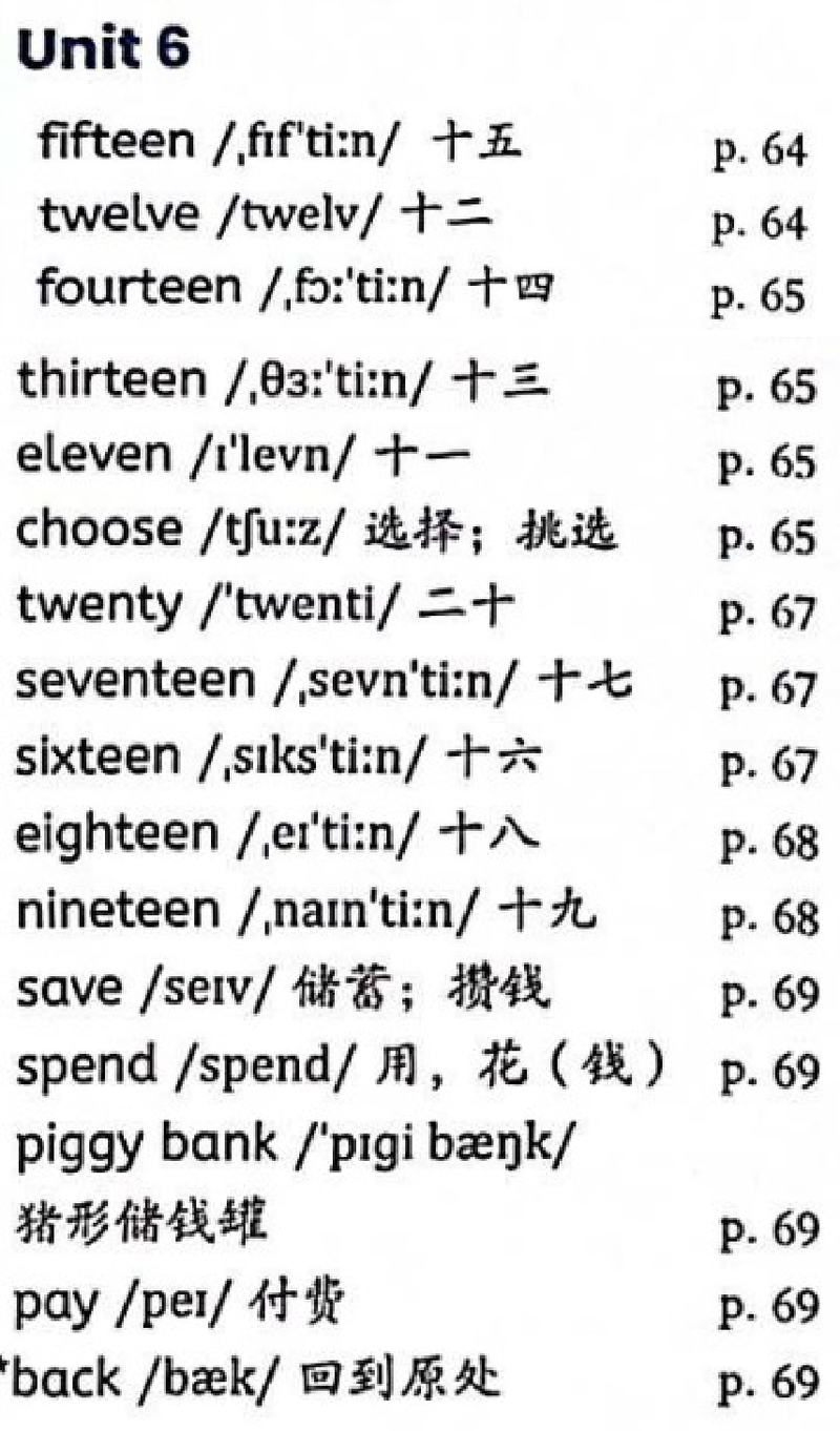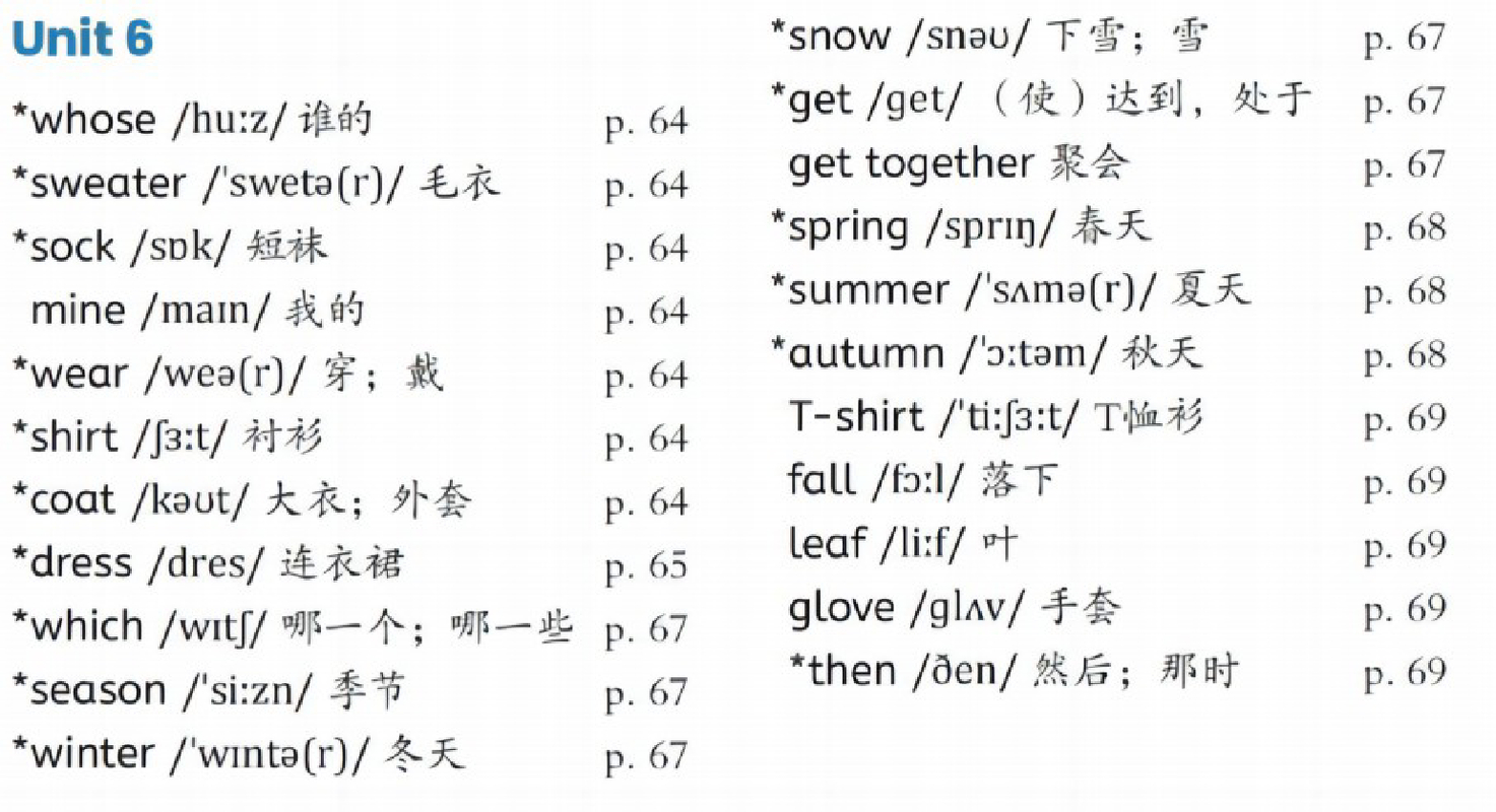 PEP四年级上册unit6单词