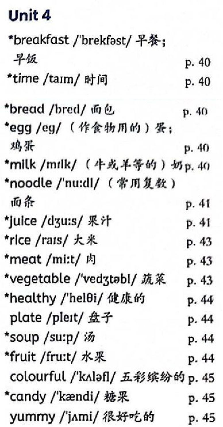 PEP四年级上册unit4单词