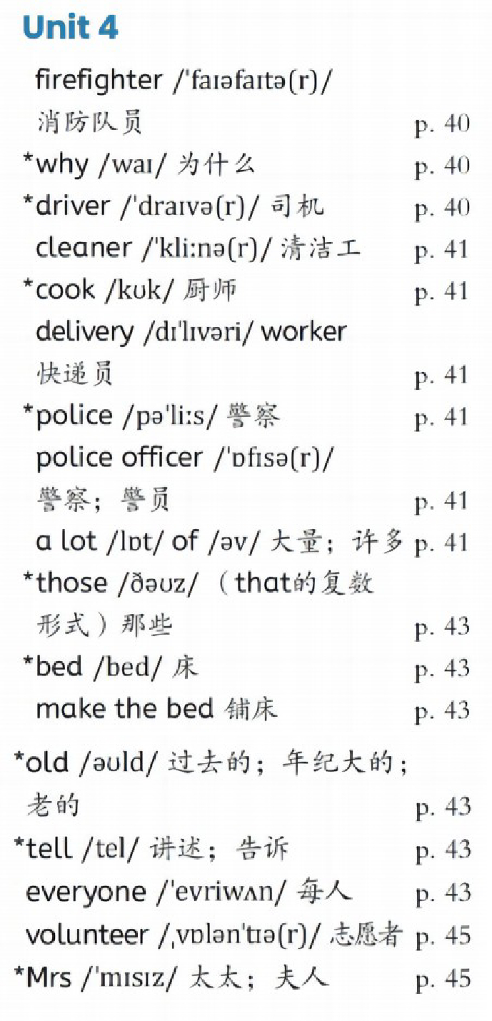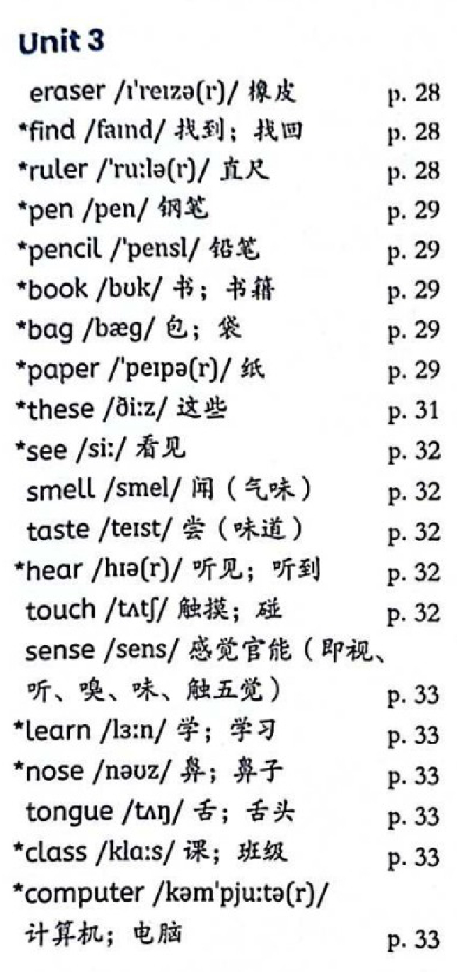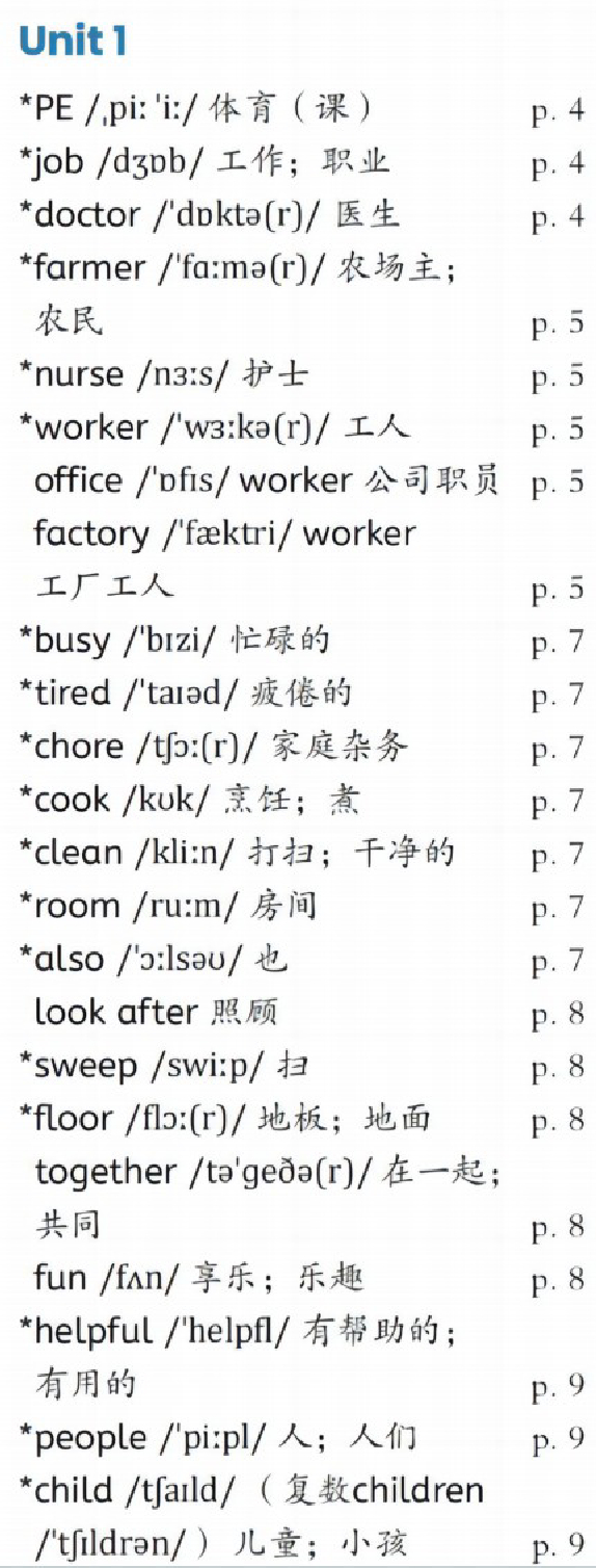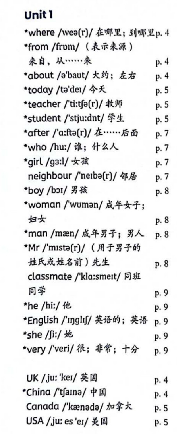 PEP四年级上册unit1单词