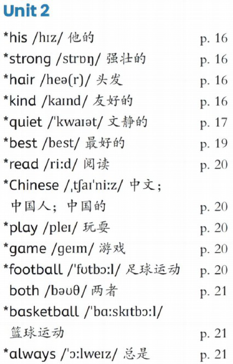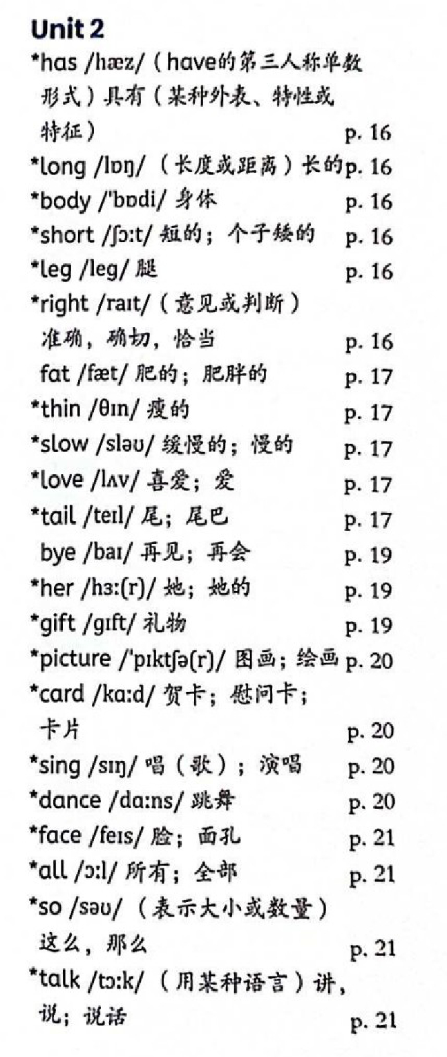 PEP四年级上册unit2单词