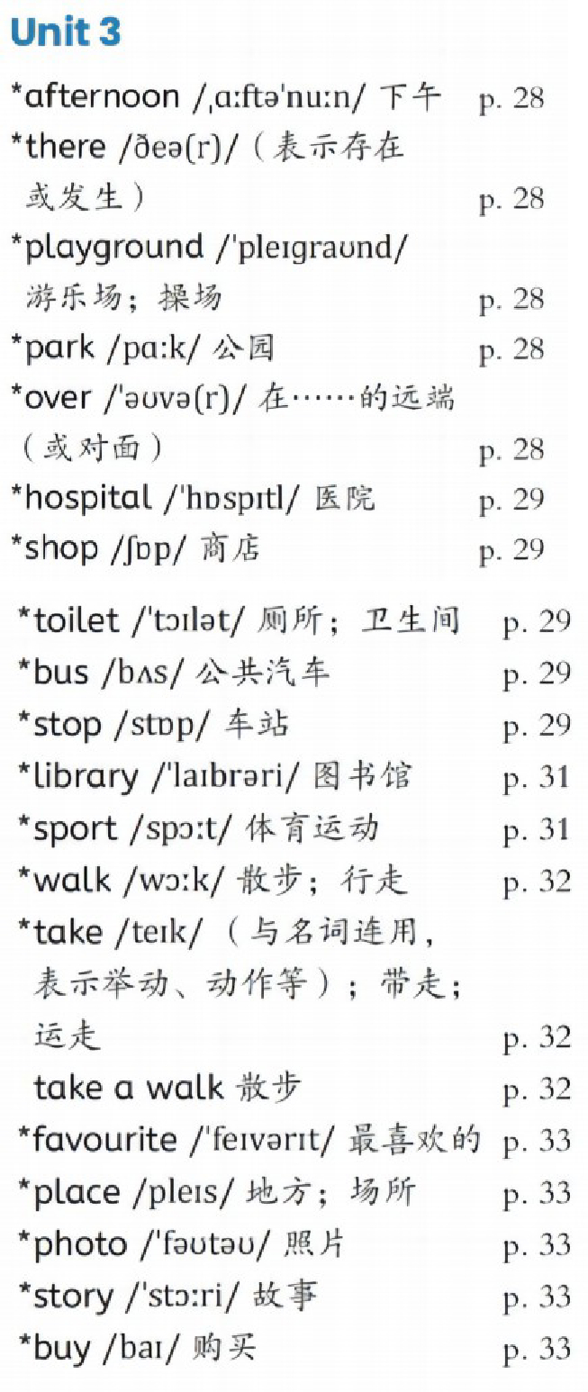 PEP四年级上册unit3单词